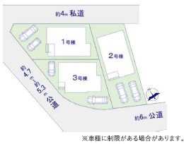 | 接道状況 | 北東側約4m市道、西側約4.7m~約5.3m公道、南西側約6m公道 | 延床面積 | 105.01平米(約31.76坪)~106.83平米(約32.31坪) |