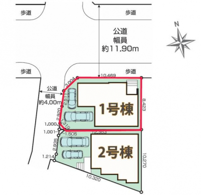| 接道状況 | 接道: 北東 公道 道路幅: 11.9m 接道: 北西 公道 道路幅: 4m |
