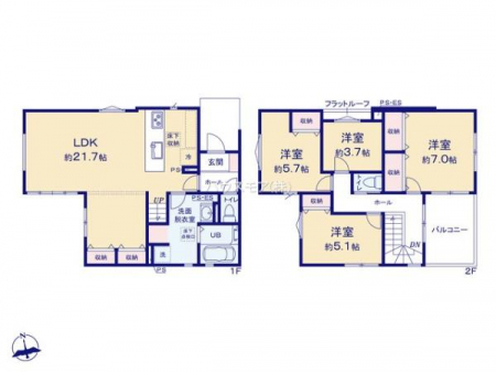 | 築年月 | 2025年6月築 | 間取り | 4LDK (LDK21.7/洋室7/洋室5.1/洋室3.7/洋室5.7) | ||