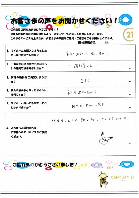 K様のご希望に近い物件が見つかり、大変うれしく思います。
